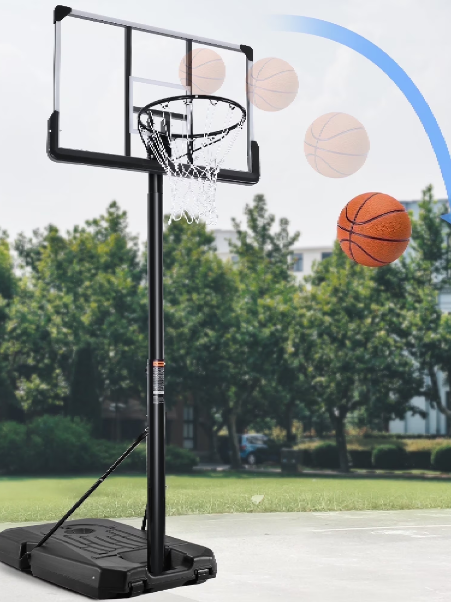 The triangle support bar design of the extra-large base makes the basketball hoop sturdy and durable. Pour sand (80kg) or water (100kg) into the bottom to further stabilize the basketball hoop system, performing a dunk with no stress.