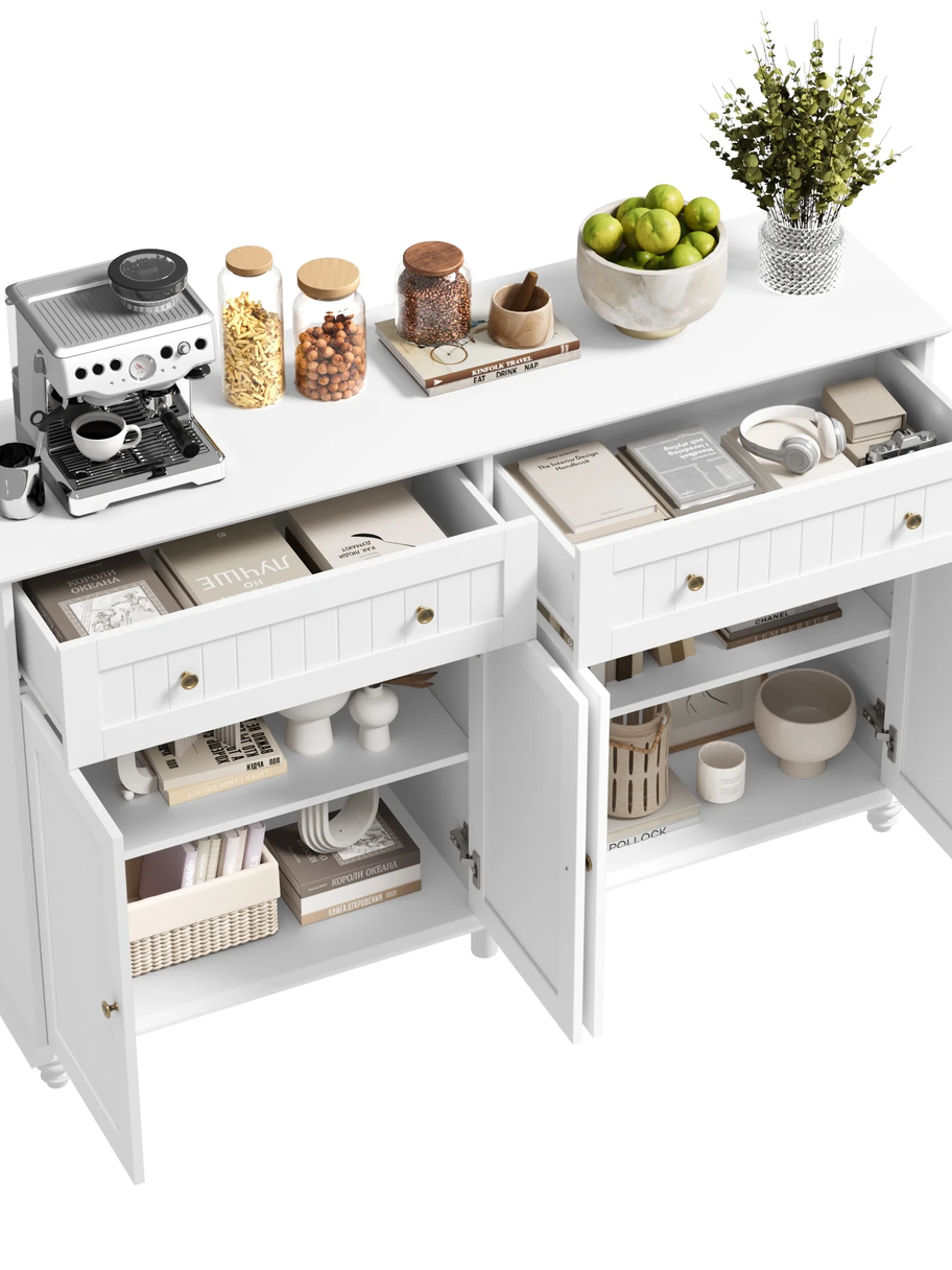 55.1"W Kitchen White Buffet Cabinet with Storage Drawer & Adjustable Shelf, Wood