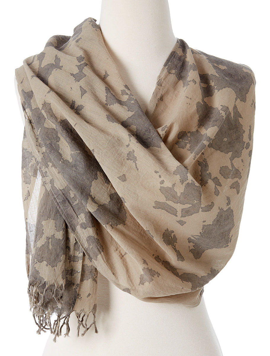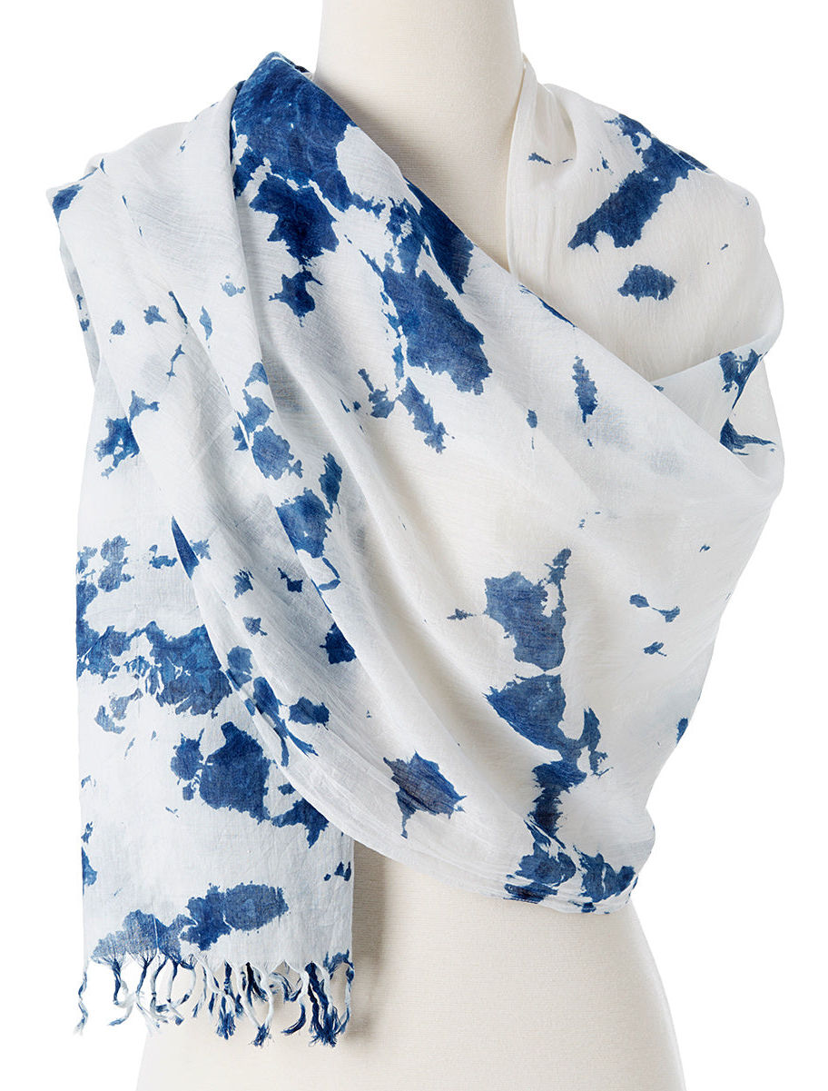 Lightweight and flowing, this tie-dyed scarf is made in a safe working environment in India. Size measures 74" X 19" and it comes in four natural colors.
