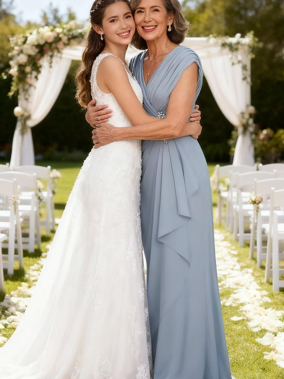 Cap Sleeve Pleated Mother of the Bride Dresses