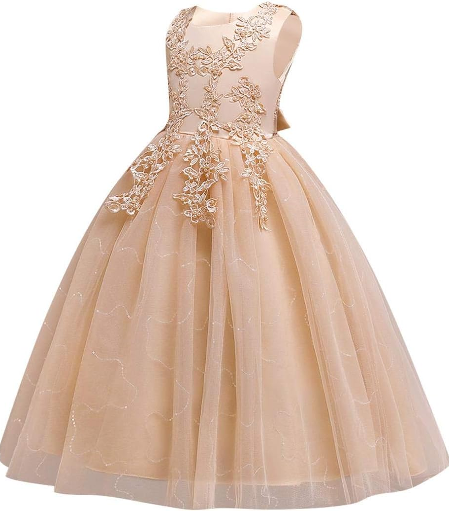 Flower Girls Embroidery Lace Bridesmaid Dress Beaded Wedding Pageant Party Princess Communion Floor Length Boho Dance Gow