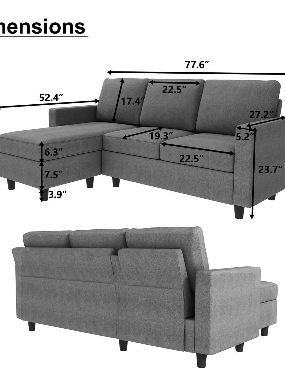 The HONBAY Dryades L-Shaped Sectional Sofa is a stylish and practical choice for modern living rooms and small apartments. Featuring thick sponge cushions with pocket coil support, it provides lasting comfort and reliable durability. Upholstered in soft, breathable polyester fiber with a linen-look finish, the fabric offers a smooth touch and is easy to maintain. Designed with convenience in mind, this sofa is easy to assemble without tools and arrives in 2 compact cartons for hassle-free delivery. The movable ottoman can be placed on either side to form a left- or right-facing L-shape, adapting to your space. Back cushions are secured with hook-and-loop fasteners to prevent slipping, and both the cushion covers are removable and machine washable, making cleaning a breeze. With a 660 lbs weight capacity, it comfortably seats 2–3 people. The classic curves and minimalist silhouette blend seamlessly with any home décor, making this sectional sofa a versatile and space-saving solution.