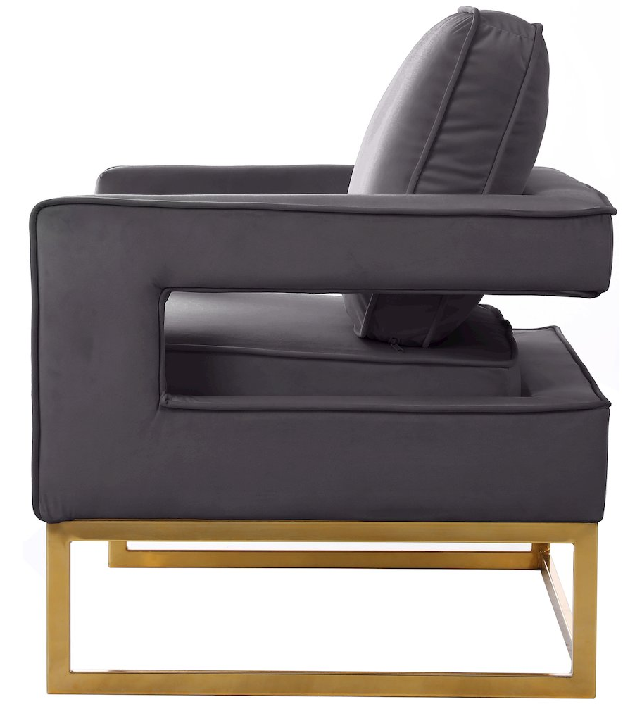 Noah Gray Velvet Accent Chair with Gold Iron Base