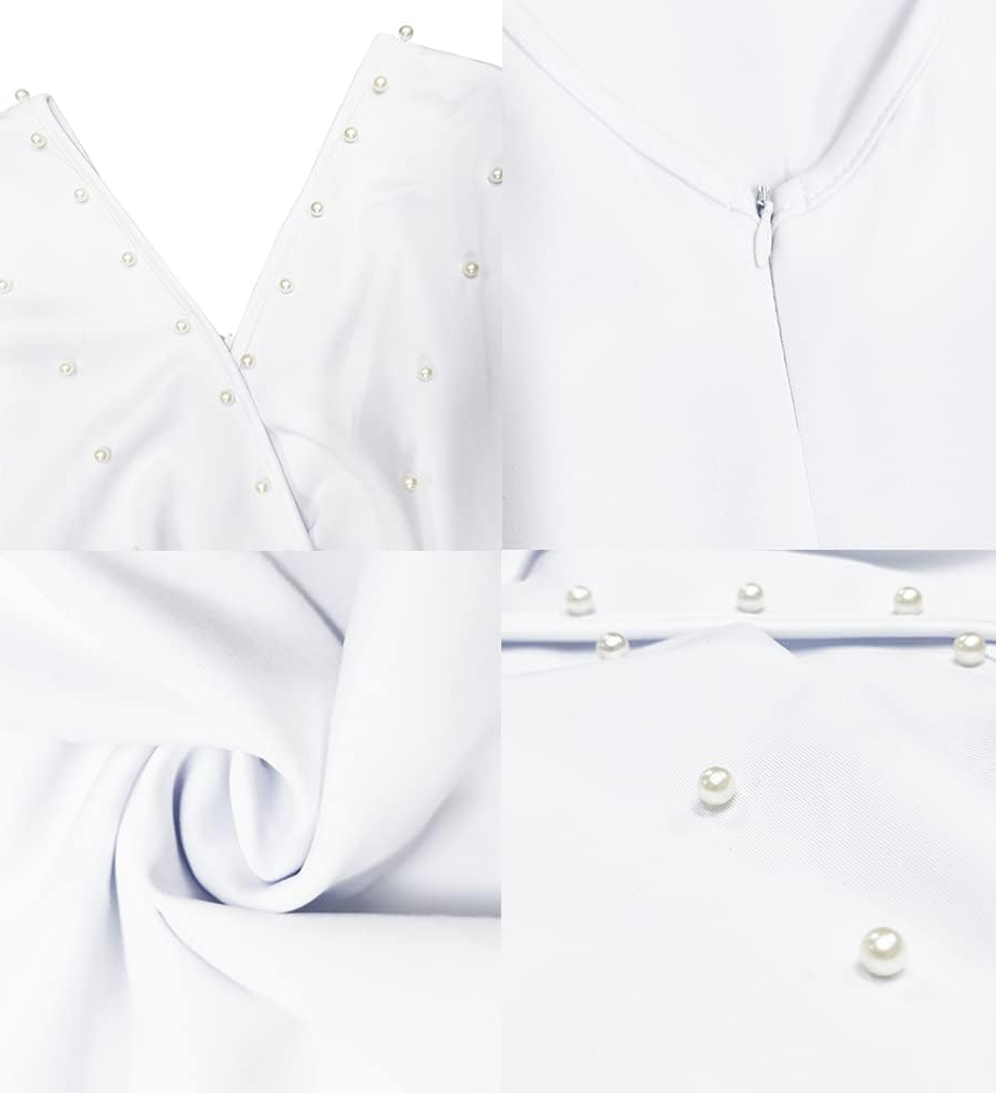 One Piece Dress For Women Summer Pearls Samll Waist Tea Length Slim Fit Work DressWhite